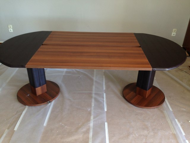 ΤΡΑΠΕΖΑ ΣΥΜΒΟΥΛΙΟΥ 220Μ * 100Β ΜΕ ΣΧΙΣΜΗ ΣΤΗΝ ΜΕΣΗ ΓΙΑ ΤΑ ΚΑΛΩΔΙΑ ΚΑΙ ΚΟΛΩΝΕΣ ΣΤΗΡΙΞΗΣ ΣΤΗΝ ΜΕΣΗ ΝΤΥΜΕΝΕΣ ΜΕ ΔΕΡΜΑ